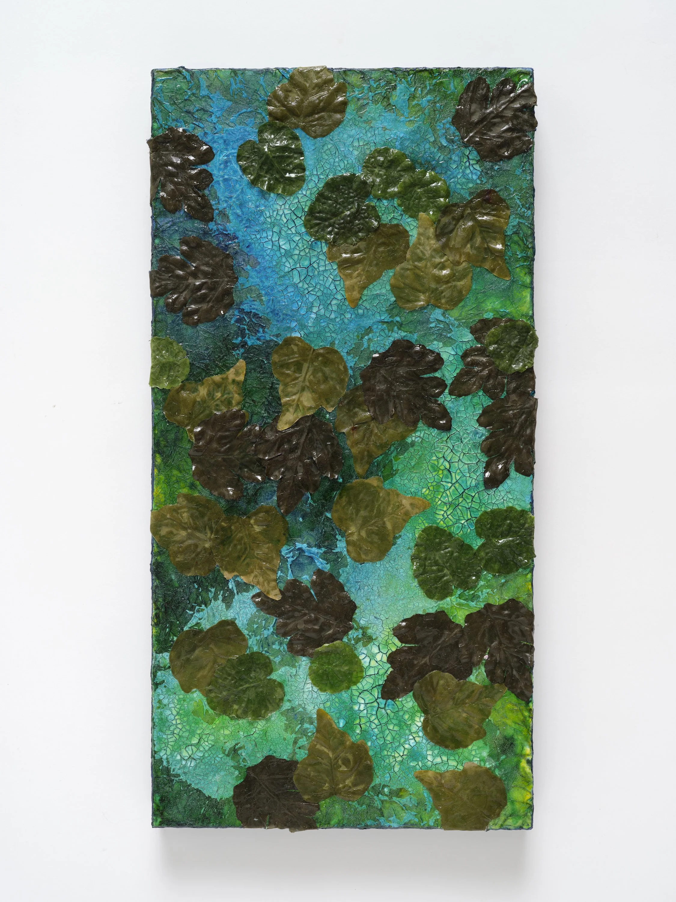 Canvas, Gesso, Acrylic Paint, Reactive Dye, Inks, Watercolor, Iridescent Powder, Gel Medium, Varnish, Modeling Paste, Tissue Paper, Polyethylene Terephthalate, Viscose Fiber, Instant Glue, Polyvinyl Acetate